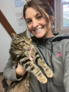 Beth works as a Veterinary Receptionist. She has worked in Veterinary Medicine since 2007. In addition to Memphis, Beth and her husband have a Bernese Mountain Dog named Samson. When not working she enjoys spending time with her family and spending time at the beach. She has her own petsitting business as well.